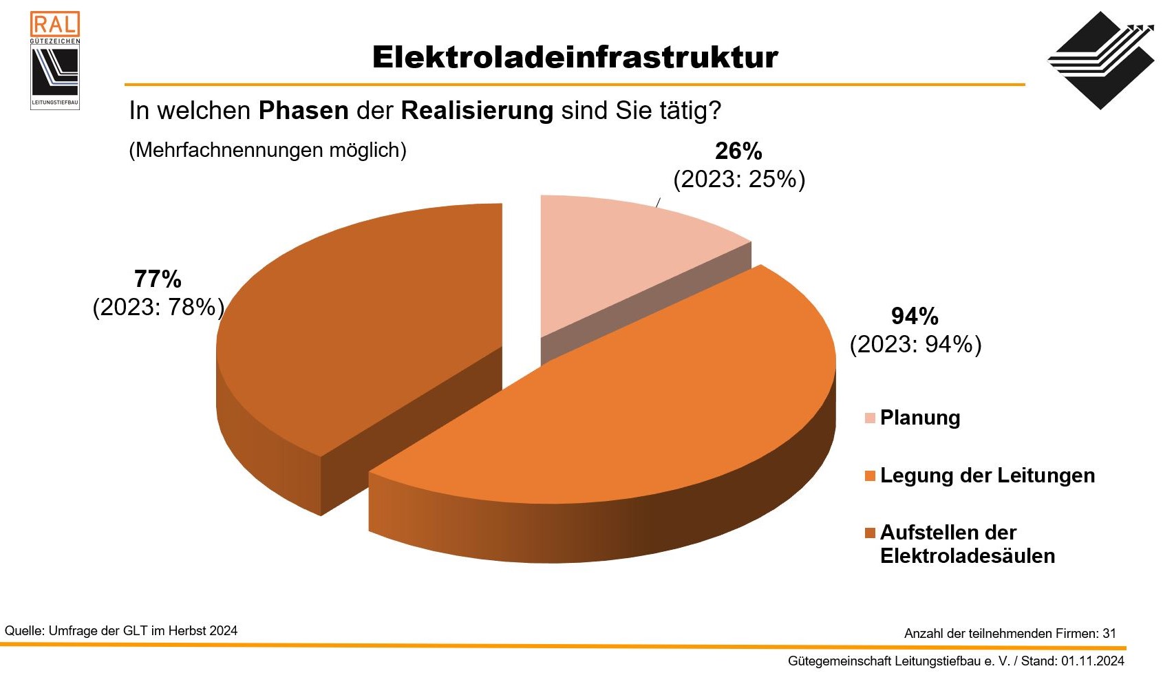 - seit 2005 führt die Gütegemeinschaft Leitungstiefbau e.V. eine jährliche Umfrage unter ihren Mitgliedern durch.
